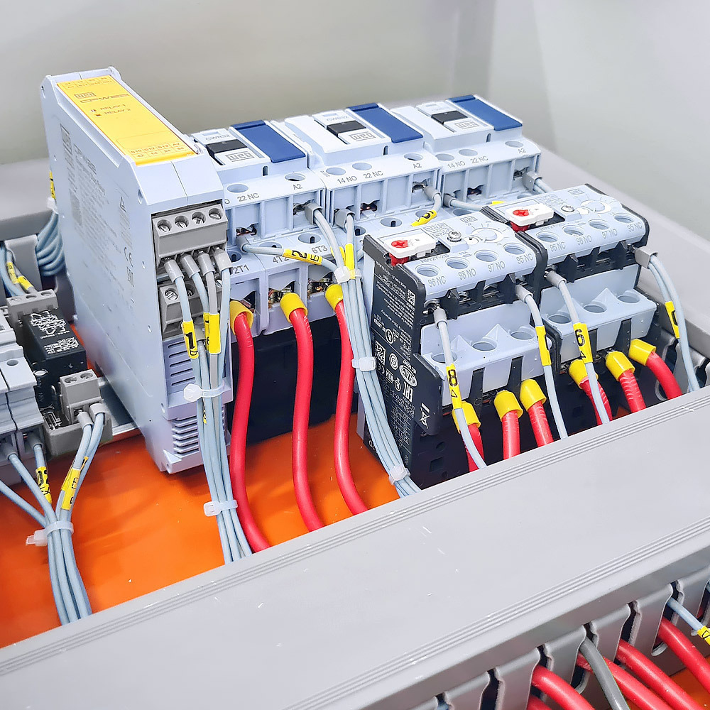 Desenvolvido para atender às diretrizes e exigência da NR-12 (norma regulamentadora nº 12), o Painel Elétrico da Engenharia Adequada funciona com partida direta de motor elétrico. Agrega o Relé de Segurança CPW22 da WEG, além do rearme manual para aprimorar ainda mais o monitoramento de segurança e o comando em 24Vca.
